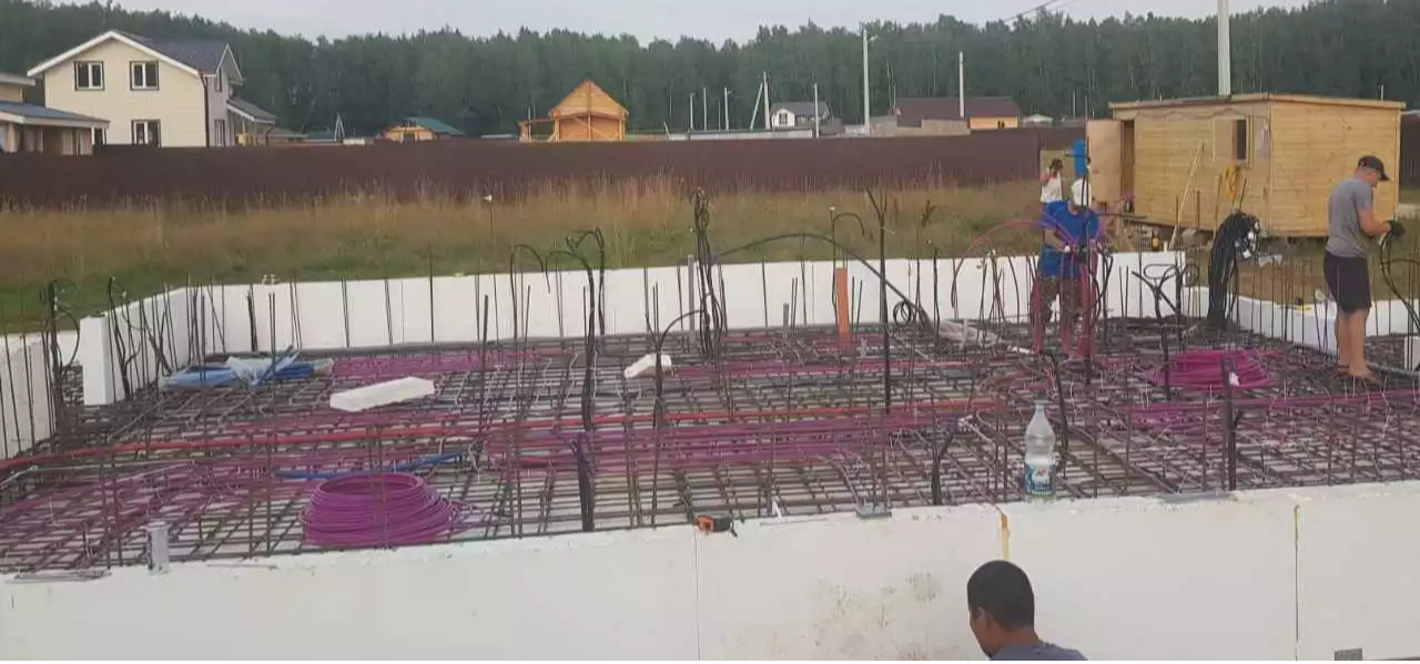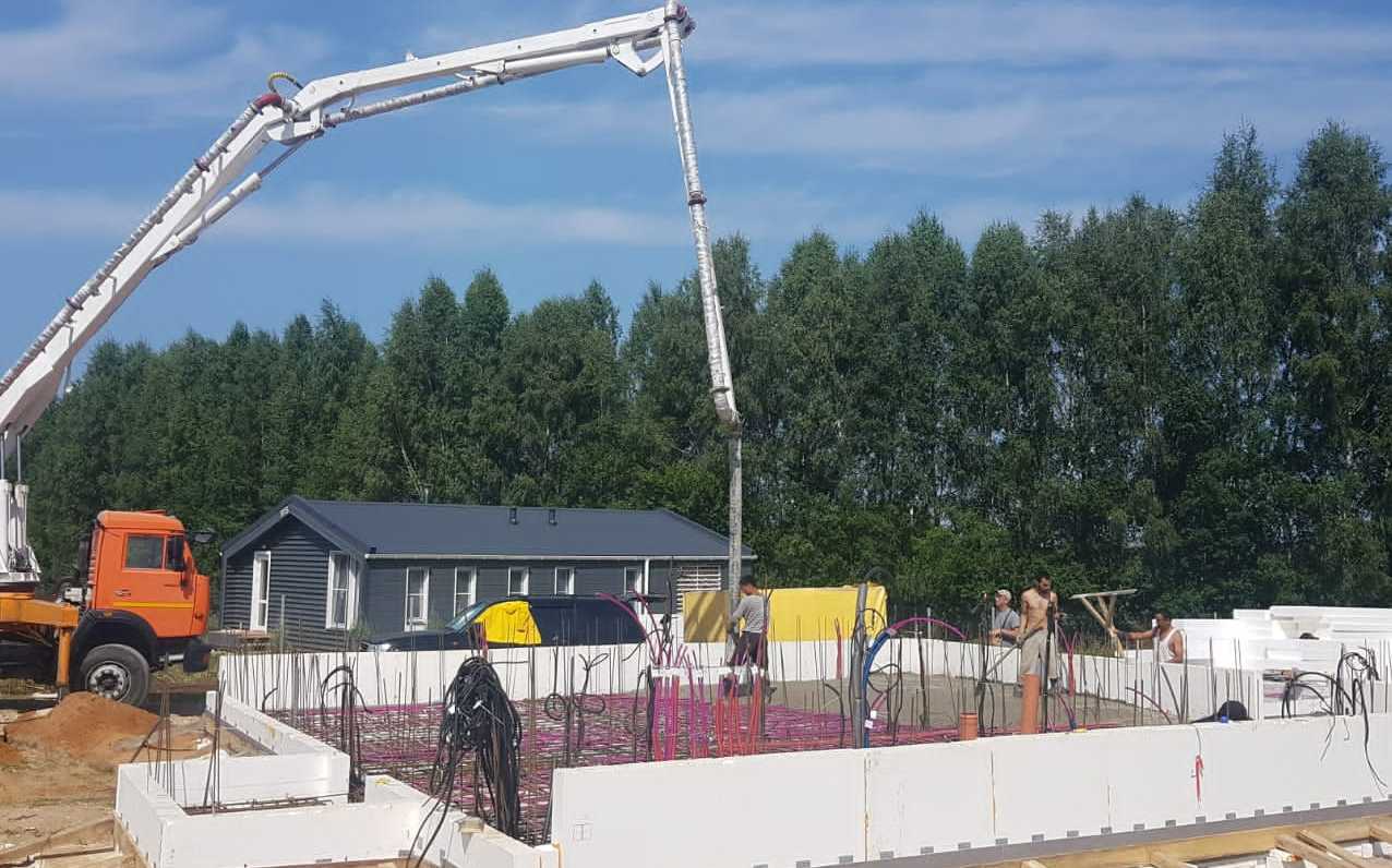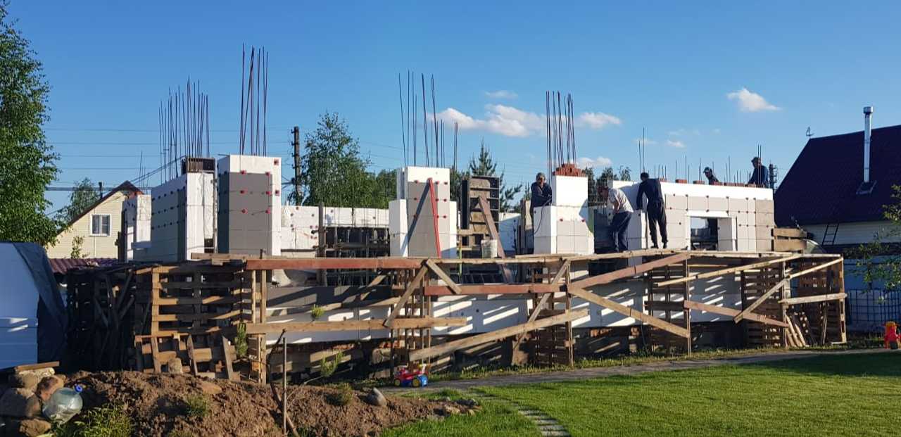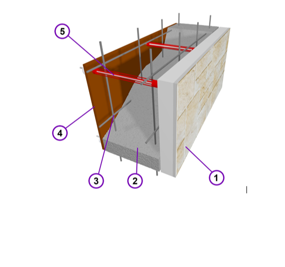 Монолитное возведение стен с одновременным утеплением, закладкой коммуникаций и облицовкой фасада керамогранитом.